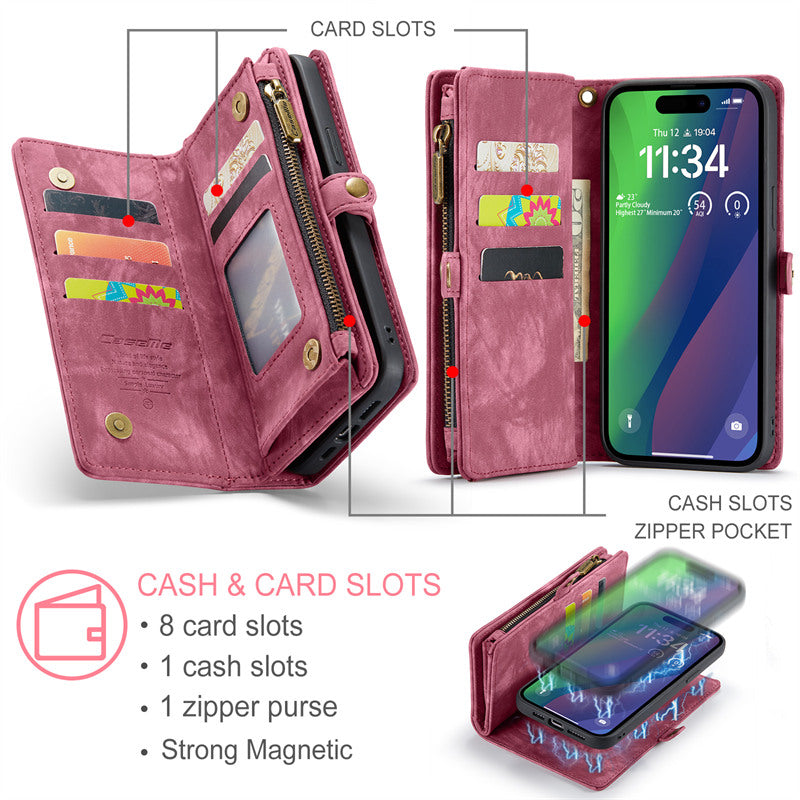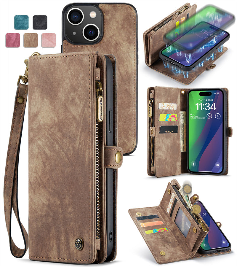 CaseMe wallet for for iPhone 15 Plus Black Pink Blue Red Coffee
