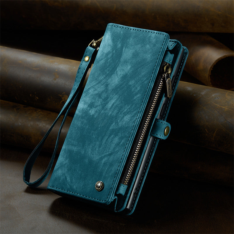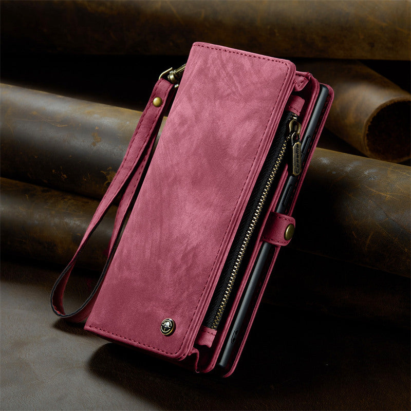 CaseMe Luxury Retro Leather Case for iPhone 15 Plus Wrist Strap Wallet Case Card Pocket Black Blue Red Coffee Pink